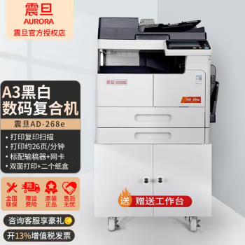 震旦AD228e/AD268e A3黑白激光数码复印机复合机打印复印扫描多功能一体机双面网络打印机 AD268e主机+输搞器+第二个纸盒+网卡 自营